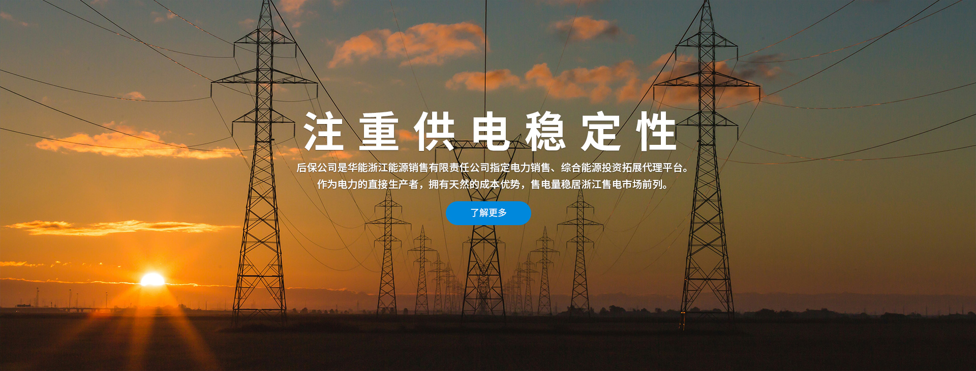 能后保能源技术有限公司是华能浙江能源销售有限责任公司指定的电力销售、综合能源投资拓展代理平台,主要负责售电代理、分布式能源拓展合作、综合电力服务、合同能源管理、代理授权、代理培训、代理结算及建安运维等配套服务工作。公司将高举中国特色社会主义伟大旗帜,转方式、调结构、持诚信、重合作、不断创新、积极进取、服务企业,为国家全面推进电力改革实现碳达峰碳中和的伟大目标做出更大的贡献。任重道远须策马,风正潮平好扬帆。在这个电力企业绿色转型发展的历史性机遇期,我们将肩负责任与使命、心怀光荣与梦想,与全体员工砥砺前行,不负各利益相关方的殷切期望,提高运营能力、增强技术实力、焕发组织活力,全力实现“十四五”发展目标,推动多方价值共同提升,同时持续为社会贡献力量,在成为世界一流的能源供应商、清洁能源开发商、综合能源服务商的道路上勇攀高峰。